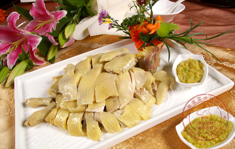 白切鸡是一道色香味俱全的汉族传统名肴,属于粤菜系鸡肴中最普通的一种,是正宗的客家特有菜肴,属浸鸡类,以其制作简易,刚熟不烂,不加配料且保持原味为特点。
