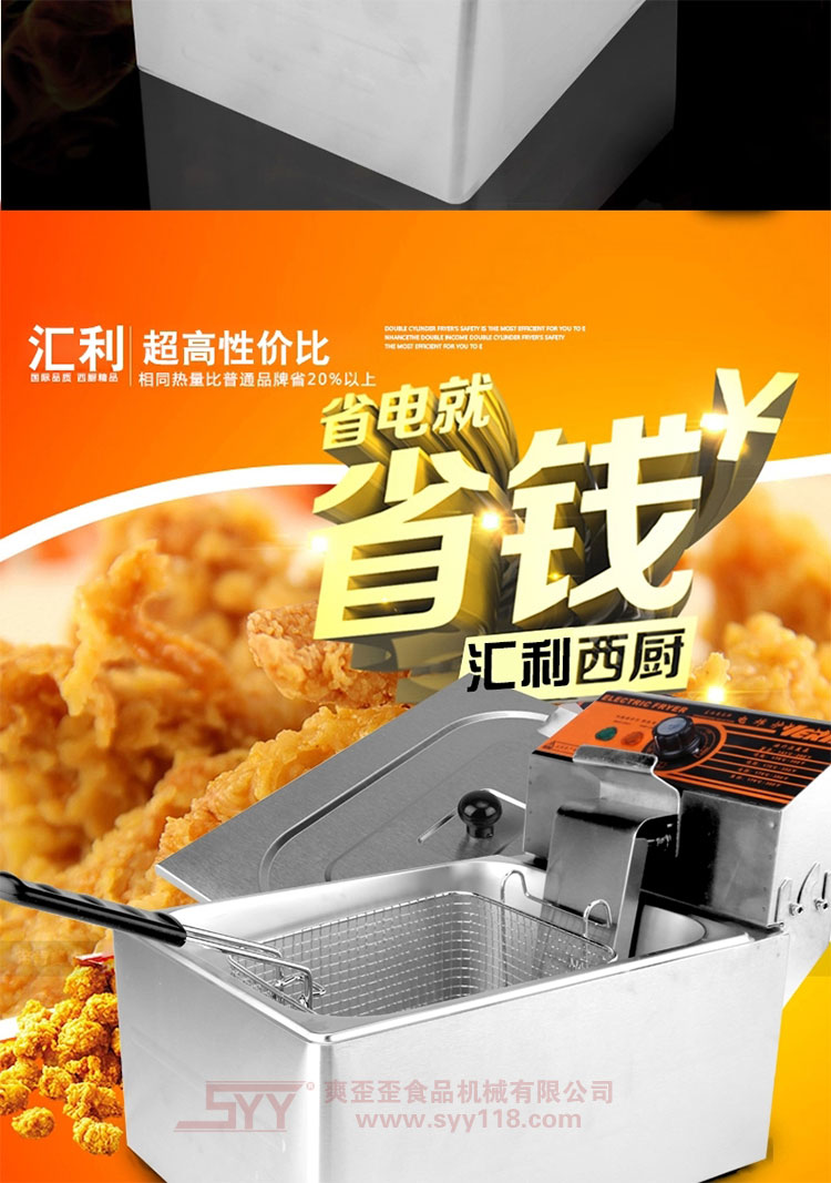 汇利HY-81R电炸锅油炸炉单缸商用炸薯条炸鸡专用
