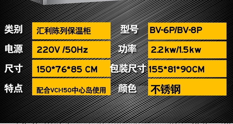 授权正品汇利 汉堡店设备 陈列保温柜BV6P8P 陈列