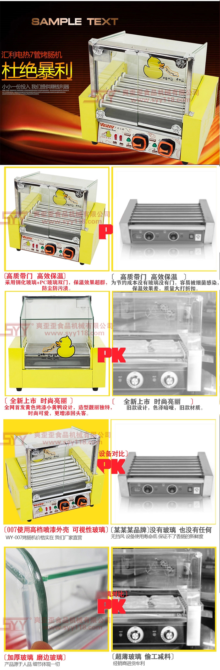 汇利XHK-007台湾烤热狗机七管烤肠机热狗机烤香肠